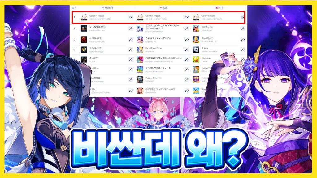 원신의 인기 순위는 어느 정도입니까?